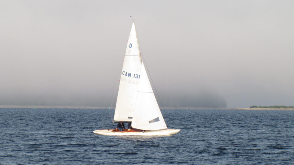 Intrigue was built in 1974 by Godsil/Miller in Seattle, USA. She had a red hull and the cuddy was built from a new mould. The original owner, Herman Lax, kept her at the Corinthian YC in Seattle. In 1982 she was sold to Canada and given a new sail number, CAN131 where she was raced at the RCYC. In 2013 she changed ownership again and the new owner painted her hull white and installed some fittings from Bes CAN4 which included the wood cuddy. Since 2017, and under new ownership, Intrigue is at the Indian Point Yacht Club, on Mahone Bay in Nova Scotia and is actively raced in the local IPYC fleet – see IPYC race results.
