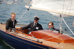 USA322 was built in 1967 by Børresen as S227 for Tommy Strømberg of Saltsjöbaden. In 1968 she was shipped to Lars Hagglof in Toronto and registered as KC115, Ludmilla. She had a successful racing career in the Great Lakes area, including winning the North American Championships in Toronto in 1972. She was shipped to Kiel for the 1972 Olympics, where, skippered by Allan Leibel and crewed by Frank Hall and Neil Gunn, she came 9th in a fleet of 22. In 1973 she was bought by George Mezo and continued her successful racing career in Toronto. She was sold to Ottawa in 1993, and eventually ended up back in Toronto, where she was bought by David Howard (a former Commodore of the RCYC). David had mounted an extensive search for KC50 Tomahawk, the Dragon he sailed in the 1956 Olympics in Melbourne. (David sailed in ’56 with his brother Cliff and friend Don Tytler, where they came 8th in a fleet of 16.) When David was not able to find the original Tomahawk, he bought Ludmilla in 2014 and restored her as Tomahawk II. Tomahawk II has two cockpit modifications (combing height and corner radius) that would need to be reversed to be fully compliant with Class Rules. She has been given a provisional Measurement Certificate noting this. These particular modifications are unlikely to affect One Design intent (all boats equal for racing).