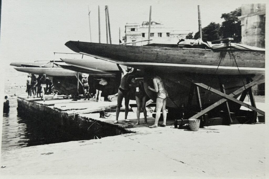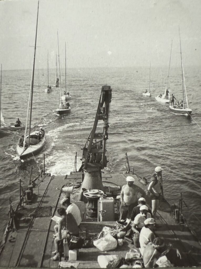 In summer, training and regattas were held on the Baltic Sea; in autumn and winter the sailors relocated to the Black Sea, with the yachts transported either by rail or on open lorries. At the time, sails were still made of cotton, polyester came much later.